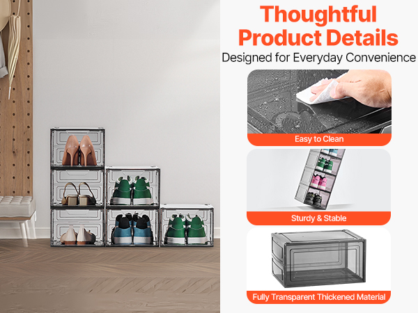 - Sturdy Thickened Construction: Our shoe storage boxes are made of upgraded PP/PET on all six sides, providing superior strength for stacking multiple boxes without warping or cracking. The magnetic front door design ensures effortless access to your shoes.