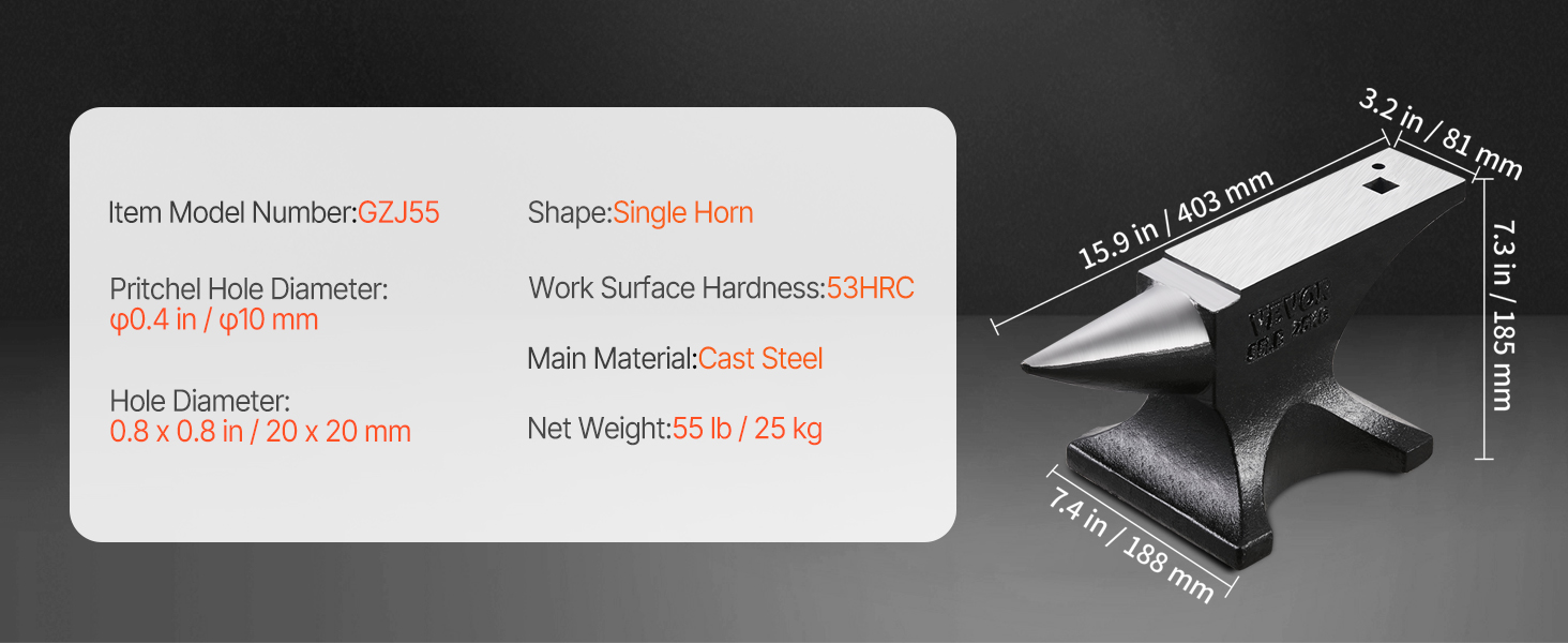 - Durable and Sturdy: Constructed from cast steel, this single horn anvil is built to last with excellent resistance to damage and deformation, ensuring long-term use. The surface undergoes a heat treatment process at 800℃, achieving a hardness of 50 HRC, enhancing its impact resistance and corrosion protection.