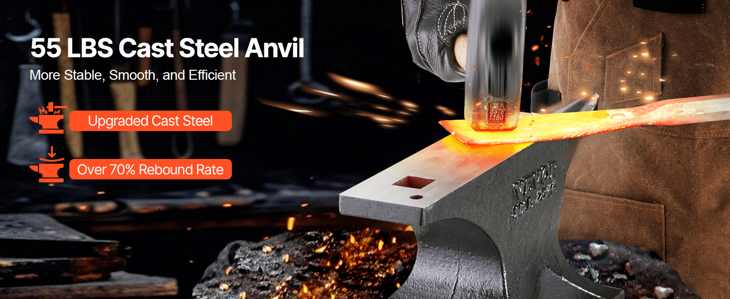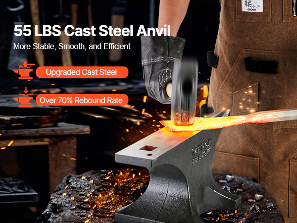 - Ideal for Beginner Blacksmiths: Weighing 55 lbs, with a working surface of 15.9 x 3.2 in / 403 x 81 mm, this blacksmith anvil is ideal for blacksmithing tasks like riveting, flattening, forging, and shaping. It's also an excellent choice for hobbyists or DIY enthusiasts. This medium-sized anvil provides great reliability without sacrificing portability, making it perfect for small to medium-sized projects.