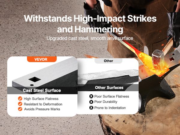 This cast steel anvil boasts higher strength and hardness. It can endure heavy impacts and striking forces without deforming or getting damaged, ensuring longevity and reliability. This makes it ideal for improving both work efficiency and the lifespan of your tools.