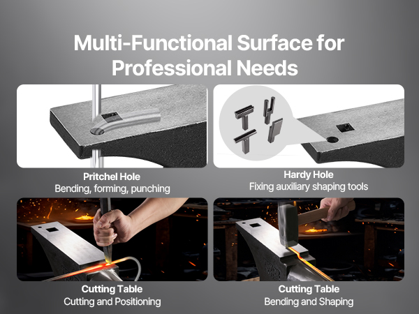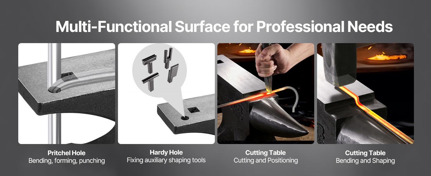 The precision-designed functional holes on the surface provide a smoother and more refined work experience, making it easier to shape and bend materials accurately. The cutting table of the blacksmith anvil provides a professional cutting and shaping experience.