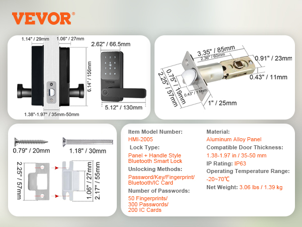 | Lock Type | Panel + Handle Style Bluetooth Smart Lock |