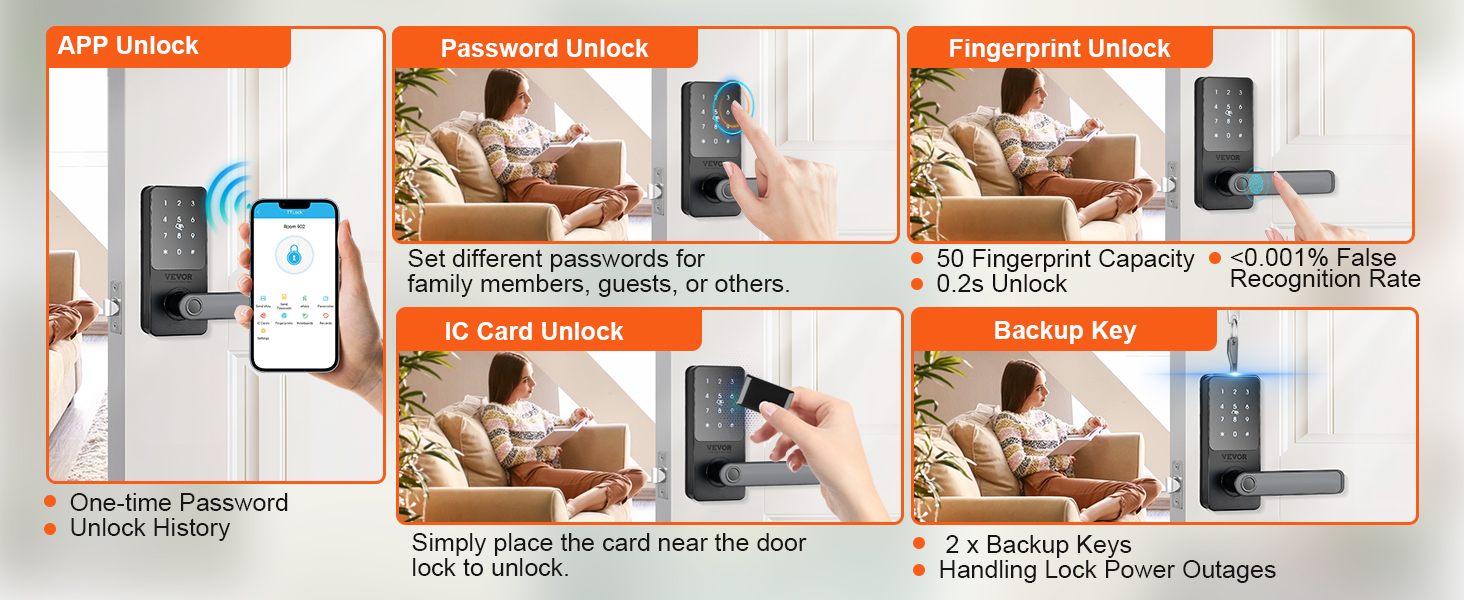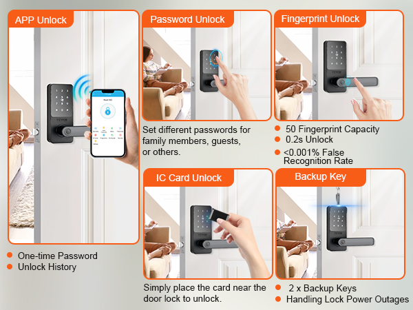 - Five Unlocking Methods: Choose from fingerprint, password, app, IC card, or key unlocking based on your preferences.