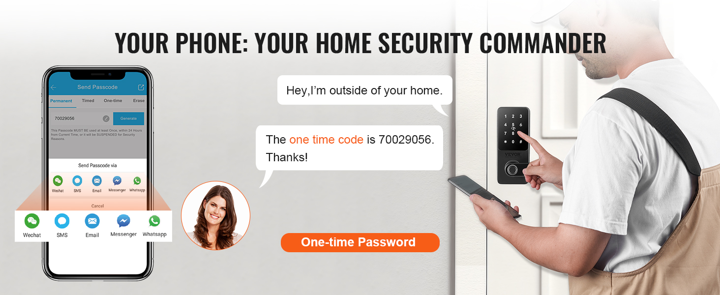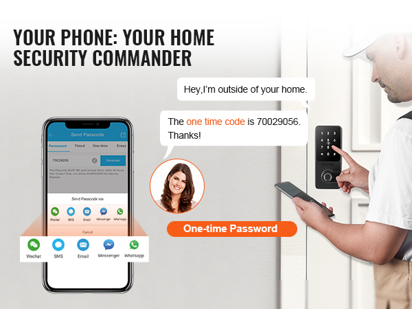 You can use your smartphone for app unlocking, password management, viewing unlock history, sharing Ekey, and more. You can also set one-time passwords for outsiders like repairmen or babysitters, with the password automatically deleted after use, ensuring security.