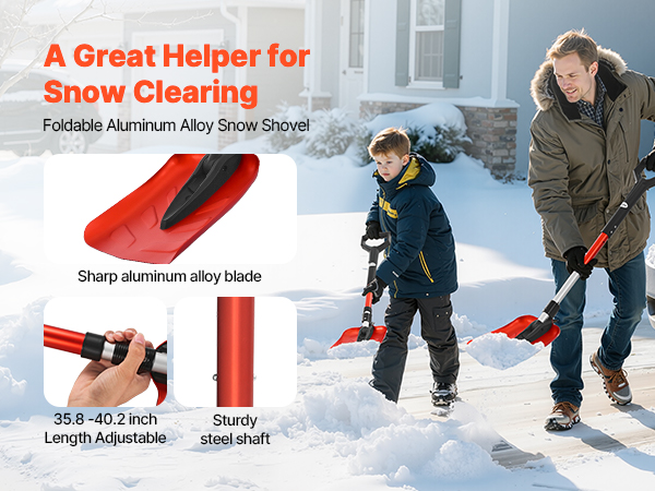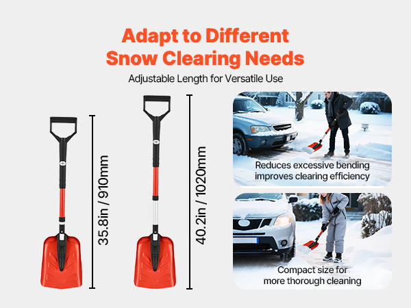 - Flexible Adjustment: This heavy-duty snow shovel features adjustable height settings from 35.83 in to 40.16 in, accommodating various user heights and ergonomic needs. It minimizes waist strain and reduces physical effort, enabling efficient snow clearing while preventing fatigue during prolonged use.