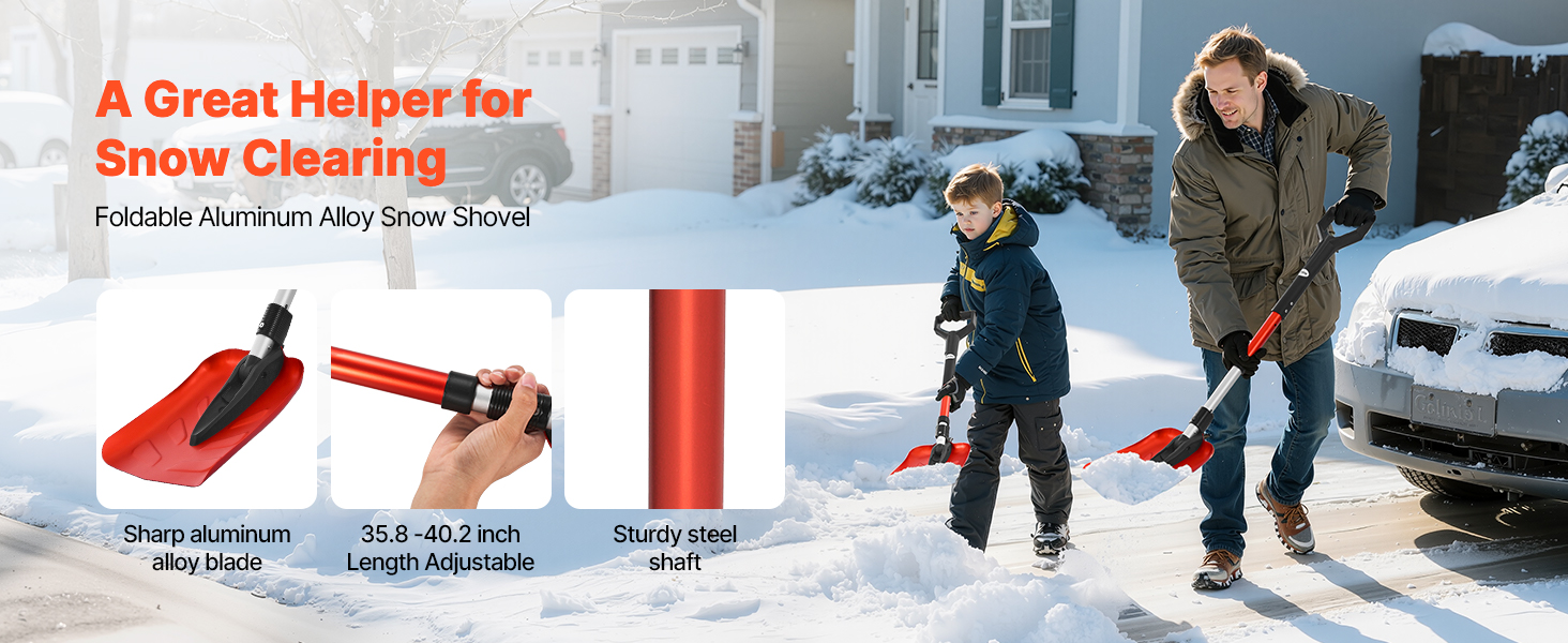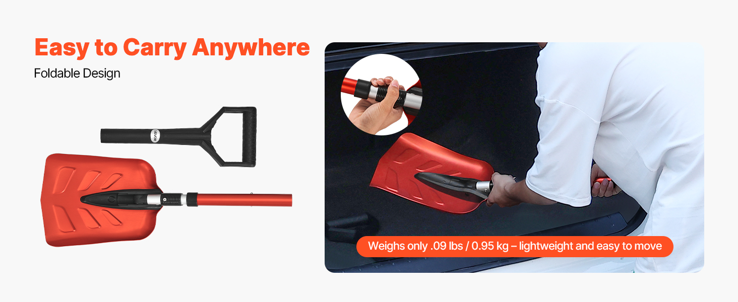 This adjustable snow shovels fit easily in your car trunk, tool shed, or porch without taking up space. Whether commuting or road trips, weighing just 2.09 lbs, it can be carried in the car, serving as a travel companion for your travels in unexpected snow.