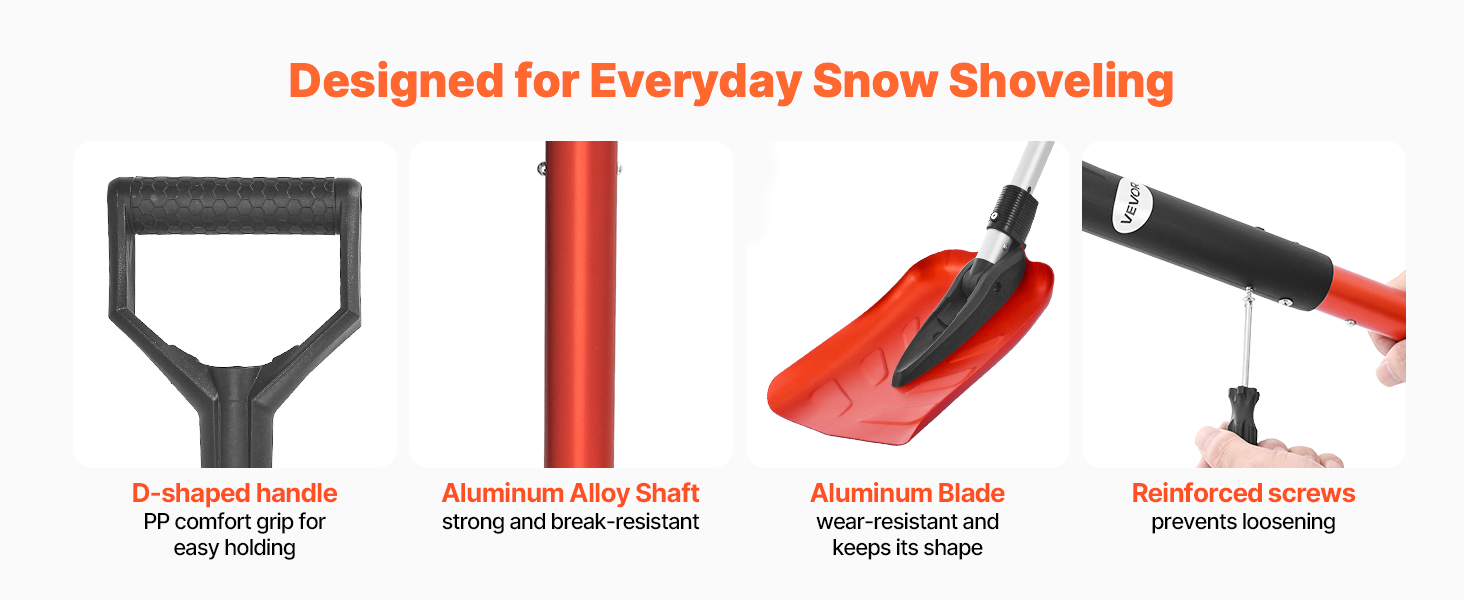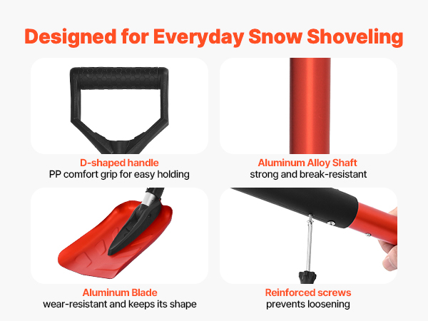 - Security & Comfort: Our lightweight snow shovels feature a comfortable PP D-grip handle that is non-slip and frost-proof. The sharp aluminum blade clears snow with ease, while the reinforced screw keeps the shaft from loosening, ensuring stable control.