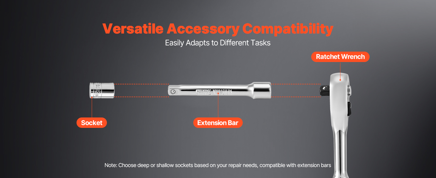 The precision socket and ratchet set works seamlessly with a variety of sockets and extension bars. Quick-release connections allow smooth switching between tools, significantly improving efficiency and convenience across different tasks.
