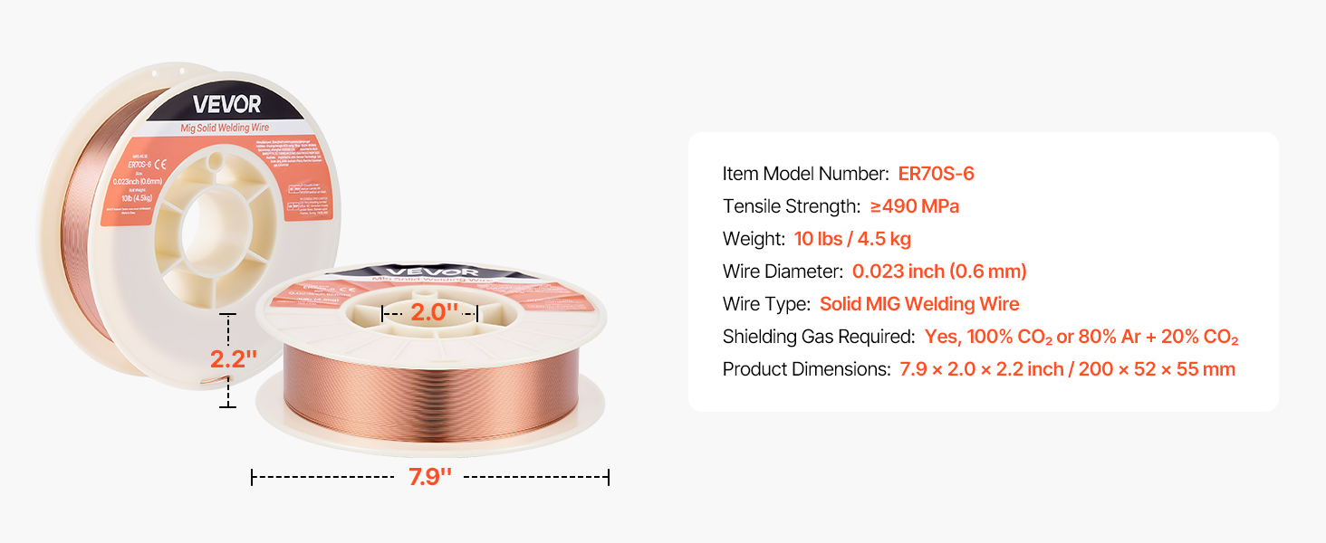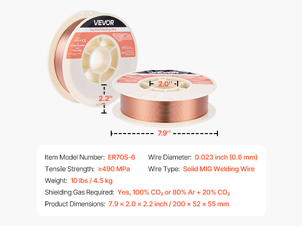 - High Quality & Reliable Welds: VEVOR 0.023" 10 lbs ER70S-6 solid MIG welding wire contains higher levels of manganese and silicon deoxidizers, delivering strong, consistent welds on mild carbon steel—even when working with oily or lightly rusted steel