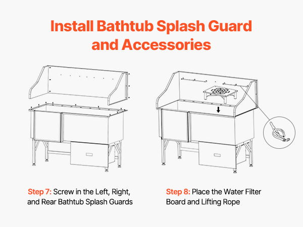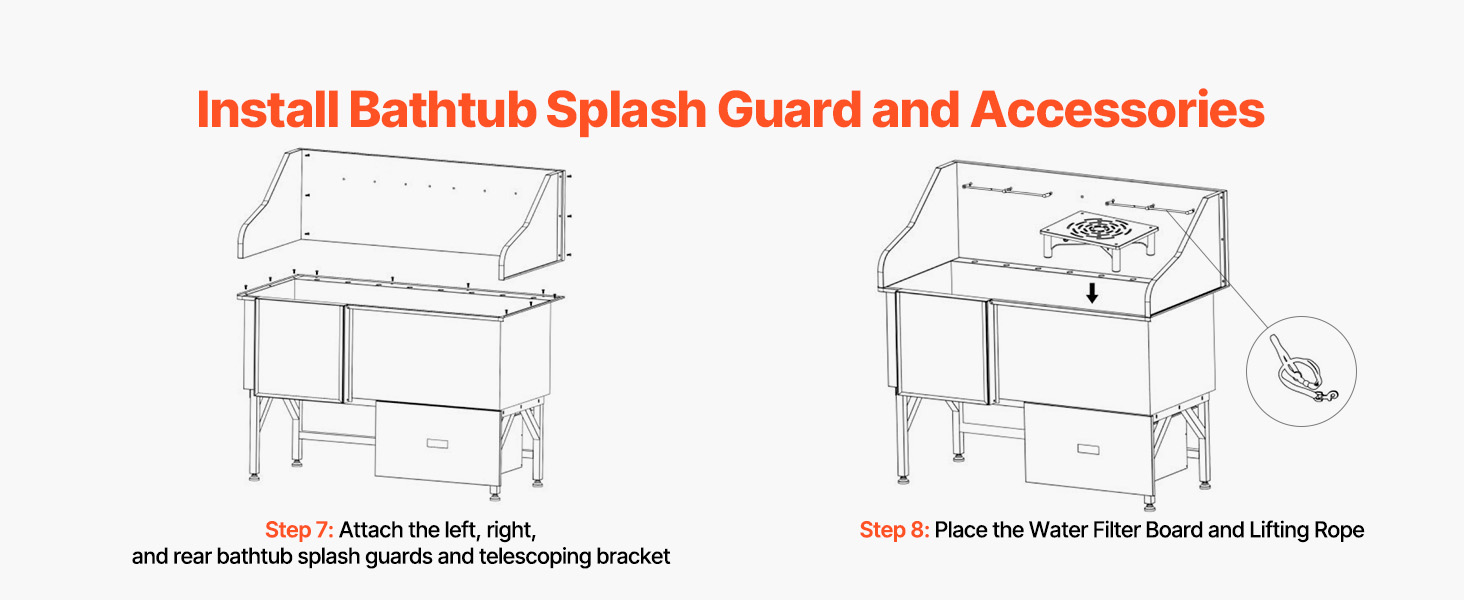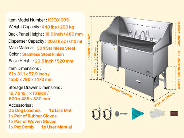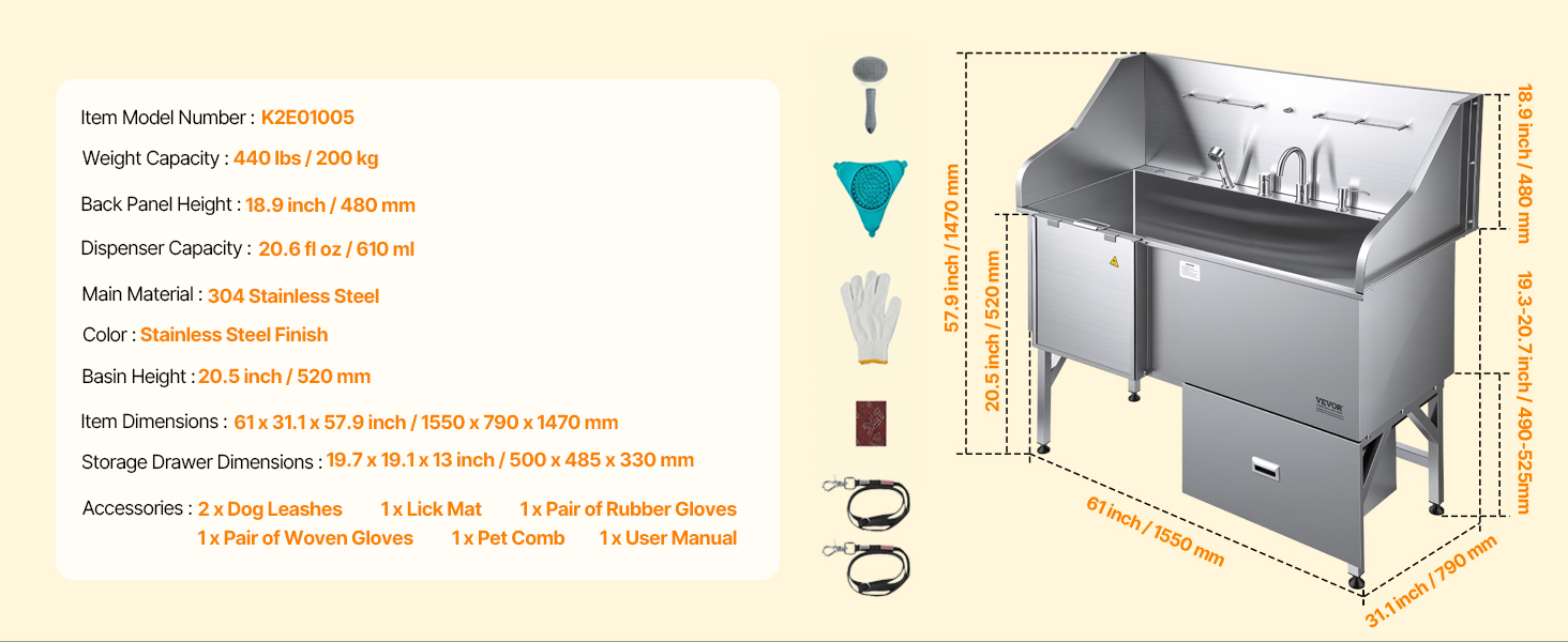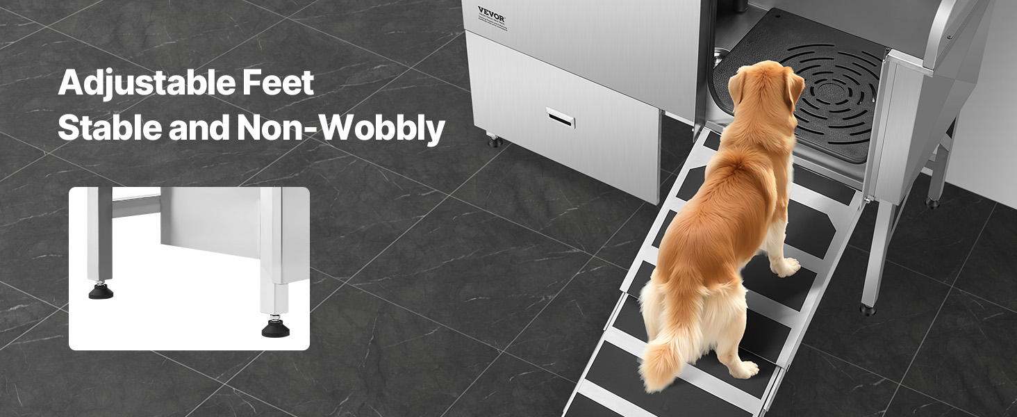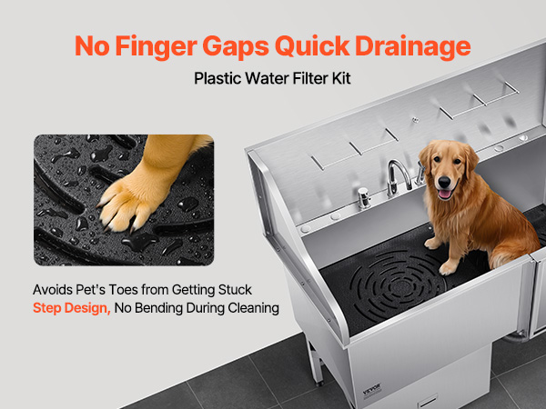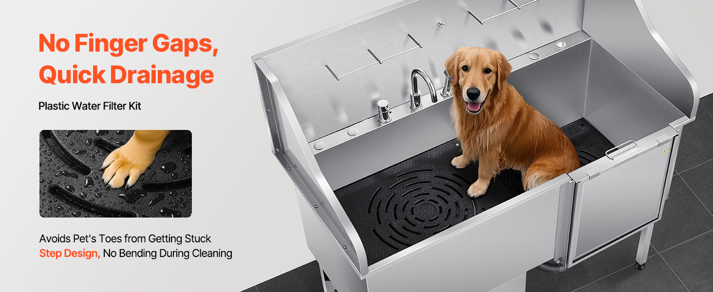 With seamless one-piece welding and built-in sealing strips, this tub ensures no water leakage. Made from stainless steel, it is rust-resistant and sturdy, maintaining its new look over time. The tub features smooth edges, ensuring security for both pets and users during bathing.