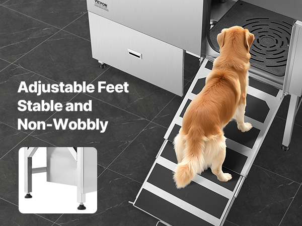 So far I love my VEVOR 50″ Pet Dog Bathing Station w/Ramp, Professional Stainless Steel. It’s easy to use. I feels sturdy when I bath the dogs. I’ve bathed a Standard Poodle, and two sturdy Labradoodles. Still very much worth the price and good quality.