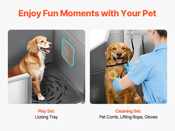- Complete Accessories: This pet bath station comes with a showerhead, faucet, and direct connection to a home hose, built for durability. It also includes a licking plate, brush, and gloves, ensuring your pet enjoys a full and enjoyable bathing experience.