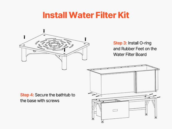 - Upgraded Water Filter Board: The non-slip textured water filter board prevents paws from getting stuck, ensuring secure footing and eliminating slips. With a weight capacity of 440 lbs / 200 kg, it is stable and reliable, allowing pets of all sizes—from small to medium-large—to relax comfortably during bath time.