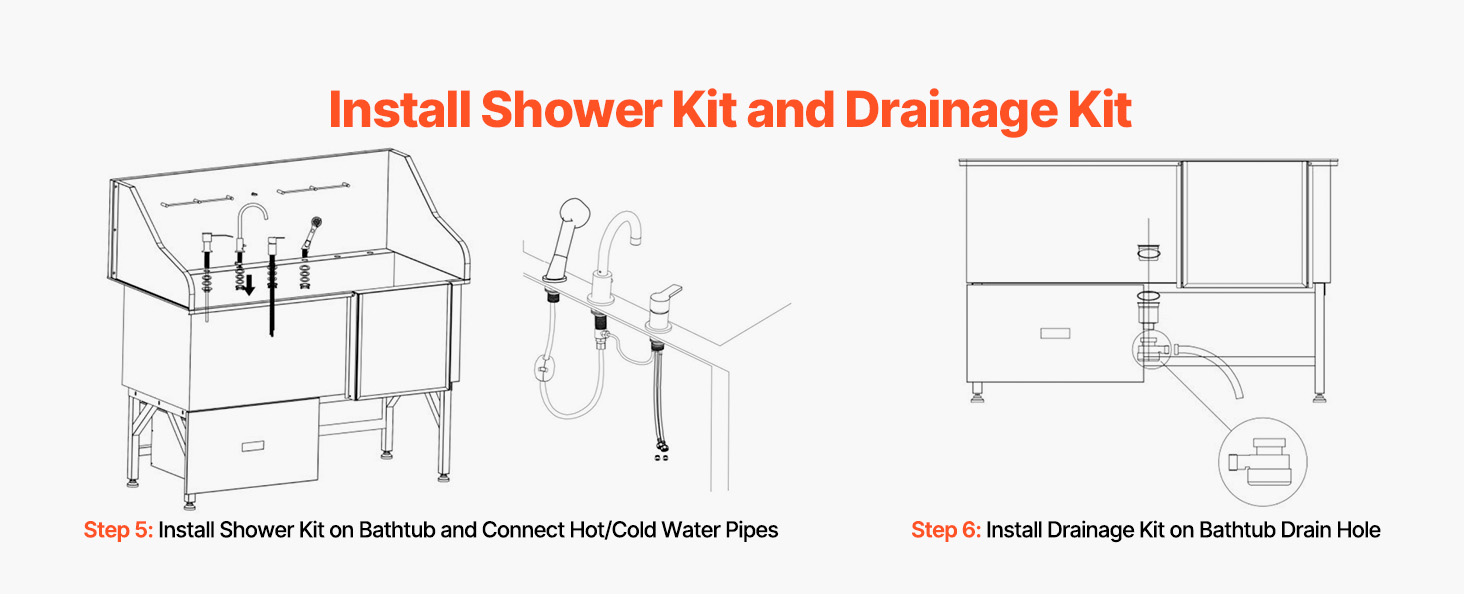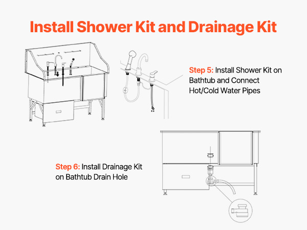 - Integrated Design: The dog grooming tub features hot and cold faucets, a dual-control showerhead, and a soap dispenser—this design makes pet bathing effortless and efficient. The PE water filter board provides a non-slip draining surface, while the 24 lbs (11 kg) storage cabinet securely stores grooming pet bath stations, keeping everything neat and organized, making pet bathing a breeze.