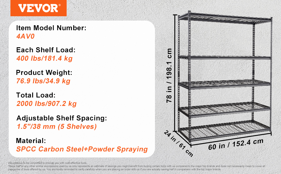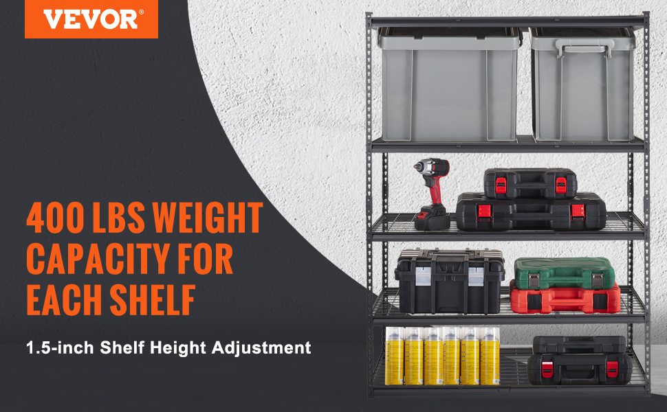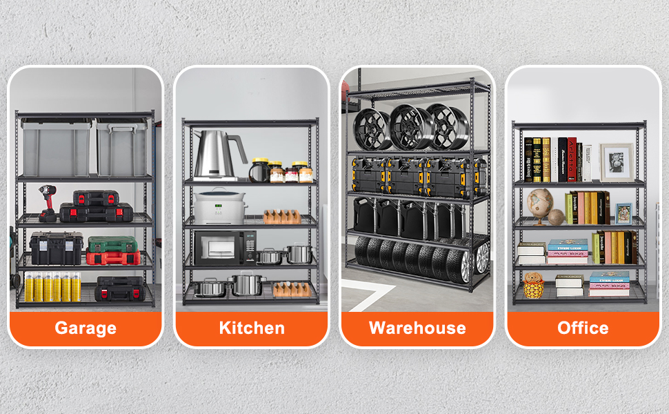 - Load Up Your Life: Transform your cluttered garage into a neat and organized space with our storage shelving unit. With a 2000 lbs total load capacity, you’re free to pile on tools, supplies, or whatever you need in your garage or warehouse. Remember, each shelf is a sturdy 400 lbs carrying companion!
