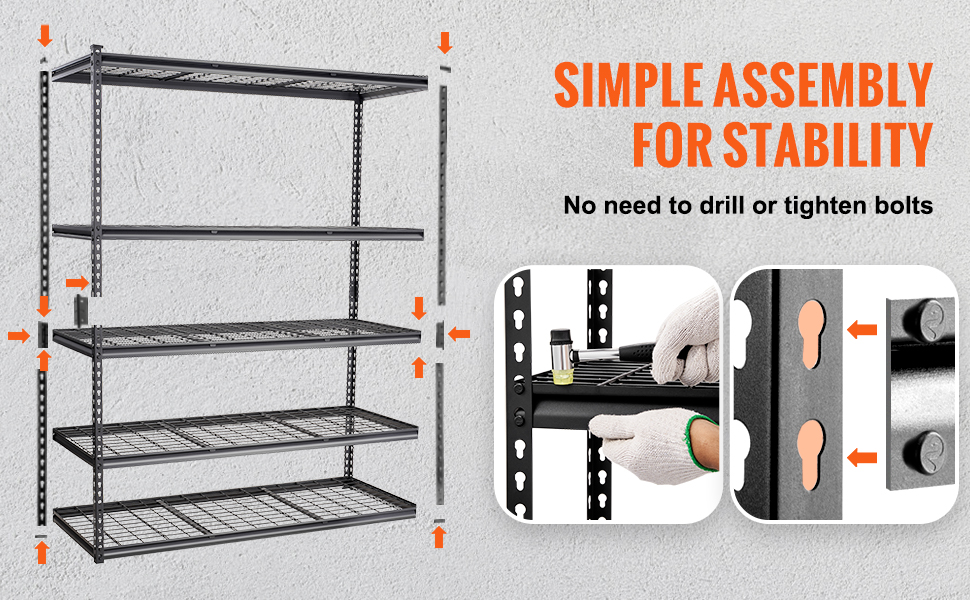- Setup? A Piece of Cake: Installing this metal shelf is effortless—non-professionals can complete it in minutes. Leave your toolbox in the drawer. With our press-to-assemble design, your only tools are a rubber hammer and gloves—both included.