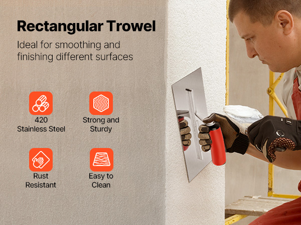 - Versatile Use: The rectangular trowel is ideal for tasks such as laying bricks, applying tiles, grouting, and other construction work, as well as for DIY projects and garden tasks.
