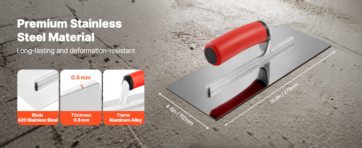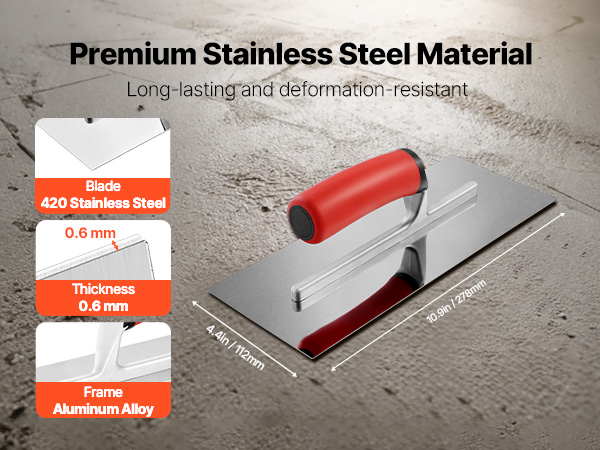 - Premium Material: The trowel blade is crafted from high-strength stainless steel, featuring a thickness of 0.6mm. It is bending-resistant, deformation-resistant, easy to clean, rust-resistant, and durable.