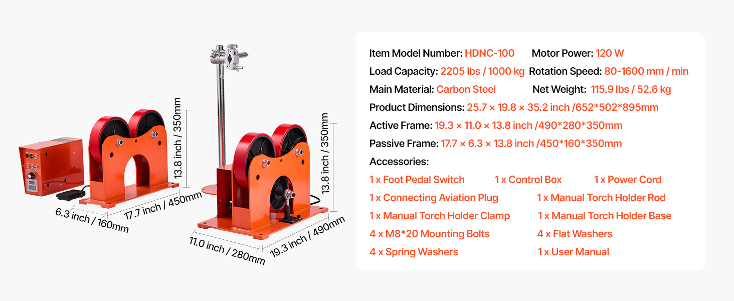 - Adjustable Rotation Speed: This welding linkage roller offers a wide speed range of 3.15–63 in/min, designed to accommodate diverse welding tasks while ensuring precise control and stable rotation for professional-grade results.