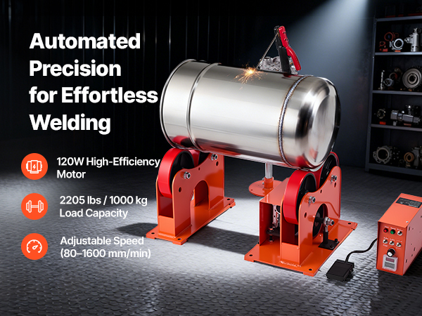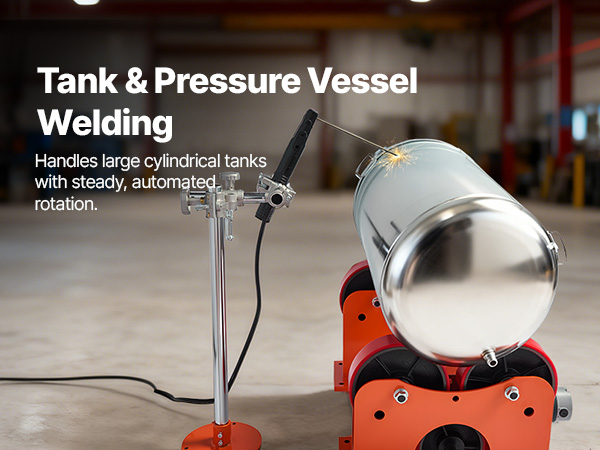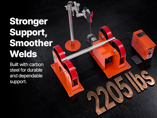 Equipped with a 120W motor, vibration-damping PU rollers, and a carbon-steel frame rated for 2205 lbs, our welding linkage roller delivers steady rotation and consistent weld seams. The dual-control setup enables one-person operation, ideal for welding tanks, pipes, and cylindrical components.