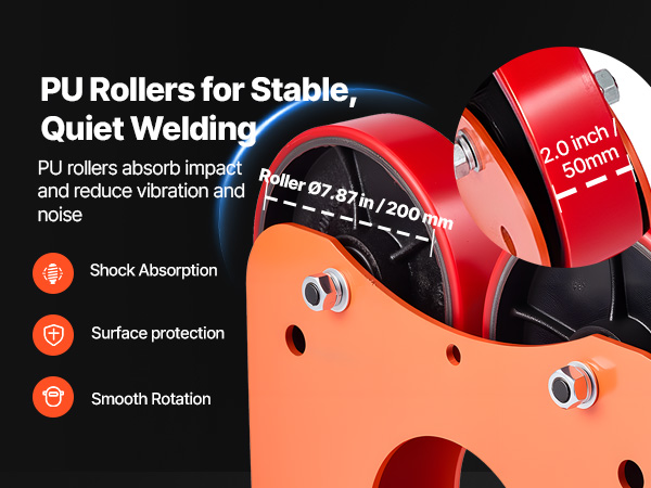 - Quiet & Protective Operation: Our welding turning roll's PU rollers operate quietly with built-in shock absorption, effectively preventing wear on the workpiece surface.