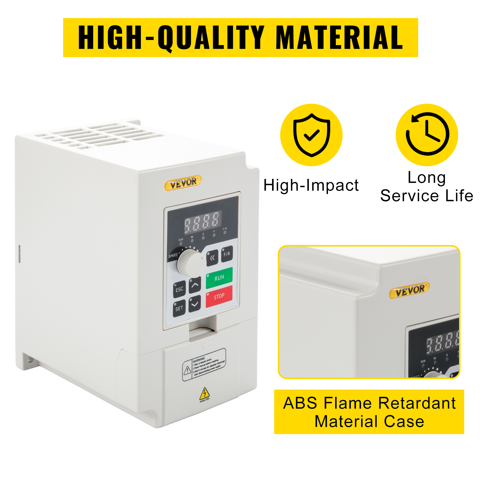 The case of CNC VFD is made of ABS flame retardant material which features strong crash-proof capabilities, good flame retardancy with a non-corrosive coating. In addition, it has good tripping prevent performance and the ability to adapt to rough power, temperature, humidity, and dust interference, greatly improved stability. The capacitor can withstand temperatures up to 105℃, higher than ordinary ones (80℃).