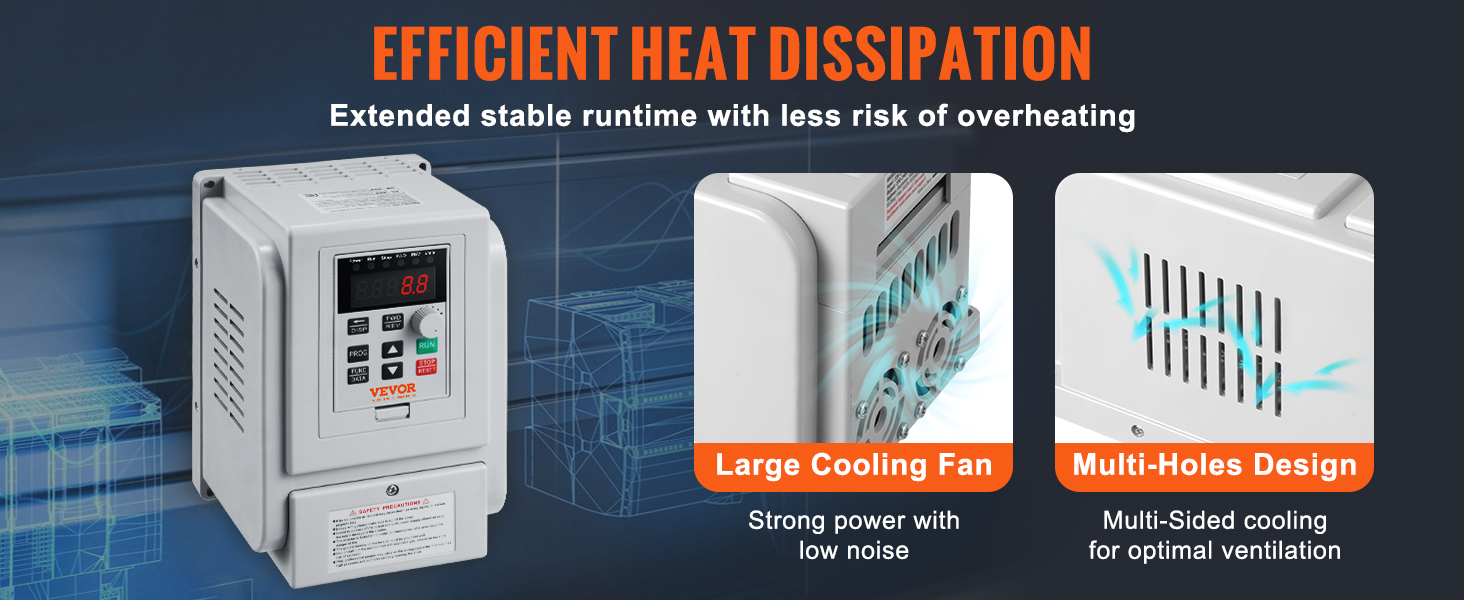 - Efficient Operation: The variable frequency drive's powerful fan ensures rapid cooling during extended use. Its multi-sided and multi-hole design promotes optimal ventilation and maintains low noise operation.