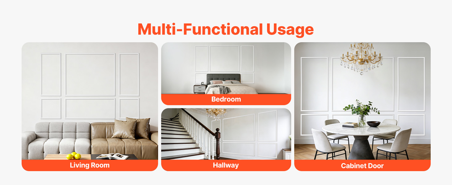 - Versatile for Multiple Rooms: This molding trim works with 10+ interior styles, from modern to classic. Use it as wall molding or accent wall panels in living rooms, bedrooms, hallways, or bathrooms to transform plain walls into stylish, elevated spaces.