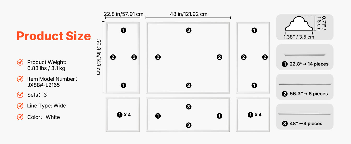 This wall trim molding set includes pre-cut trim molding pieces for a smooth and simple assembly. Whether you’re refreshing a rental apartment over the weekend or upgrading your forever home, every detail is designed to help you achieve magazine-worthy wall molding & trim results on the first try.