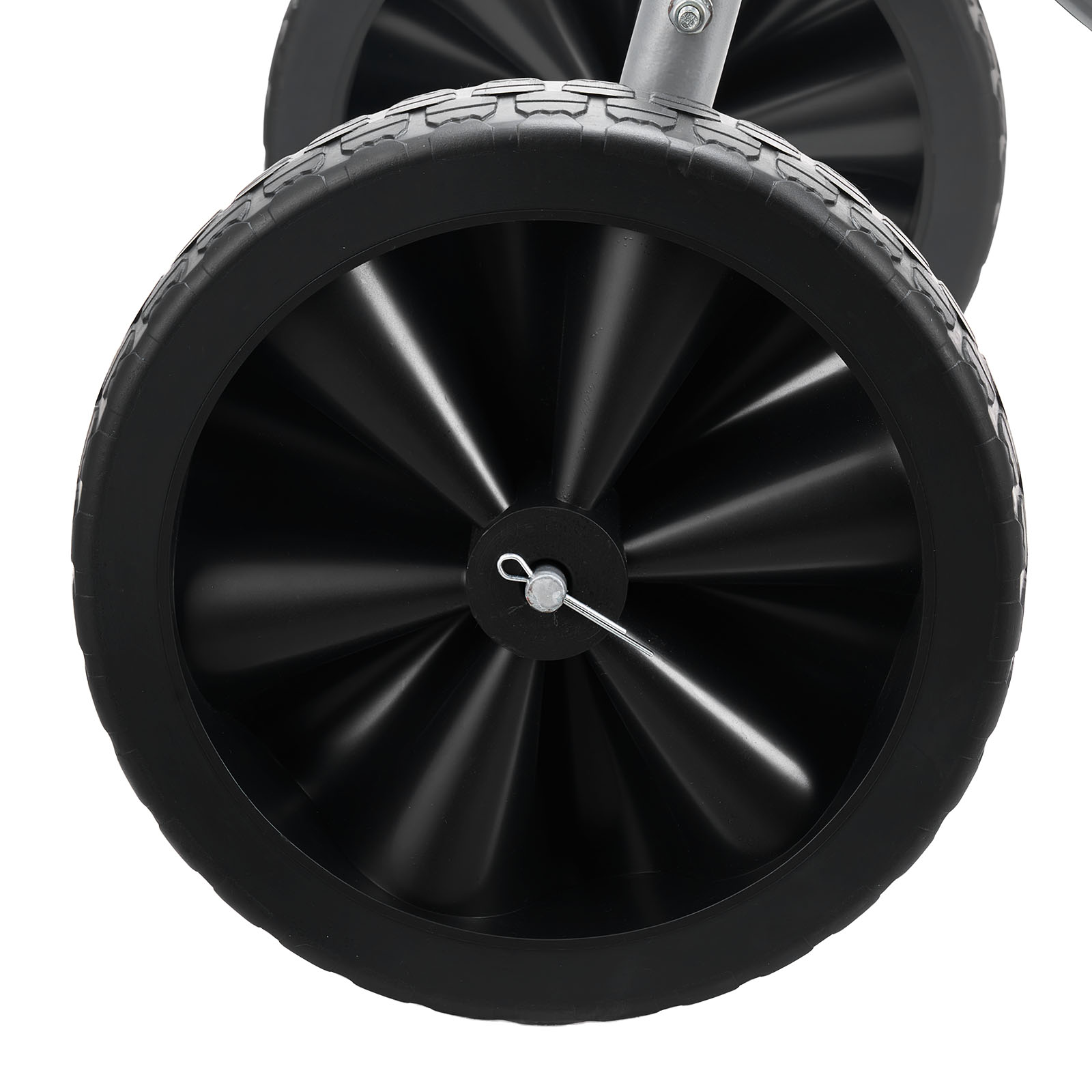 Durable, puncture-free wheels roll effortlessly on grass, gravel, or pavement—no inflating required.