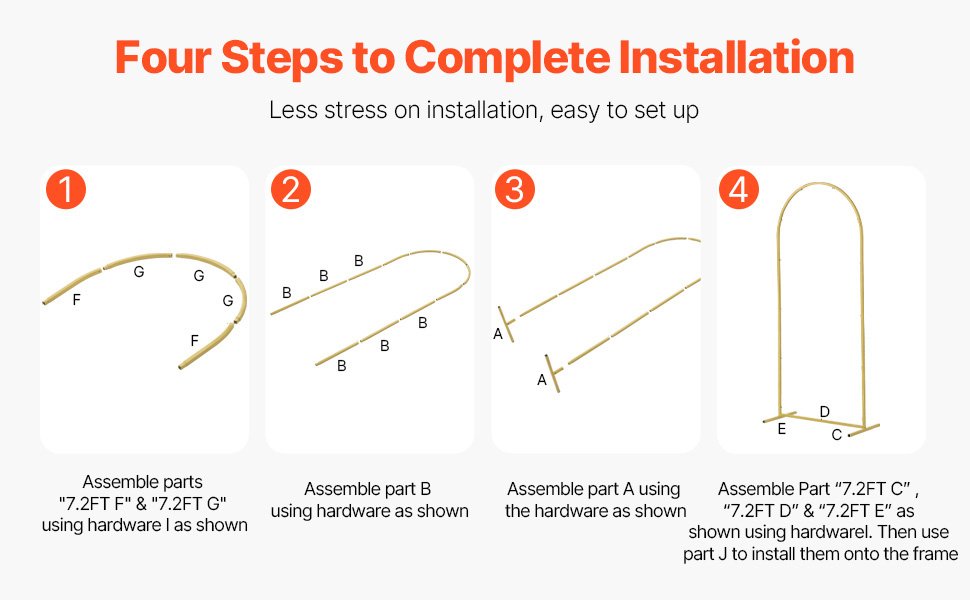 - Easy Installation: Enjoy our straightforward installation process. Each component of this wedding arch backdrop stand is clearly labeled with corresponding numbers that align with the instruction manual, ensuring simple and stress-free assembly.
