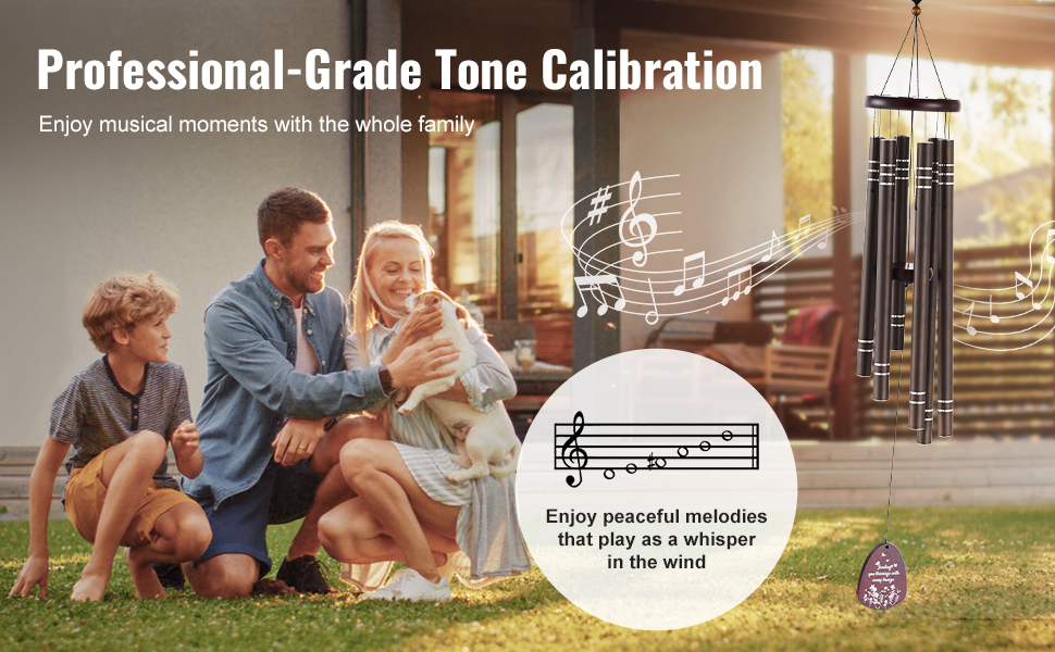 Featuring a 42-inch large black metal design, our deep tone wind chimes include 6 aluminum tubes that emit a subdued D major melody. Suitable for garden, balcony, patio, and home decor, it’s an ideal choice for Mother’s Day or Christmas for your beloved.