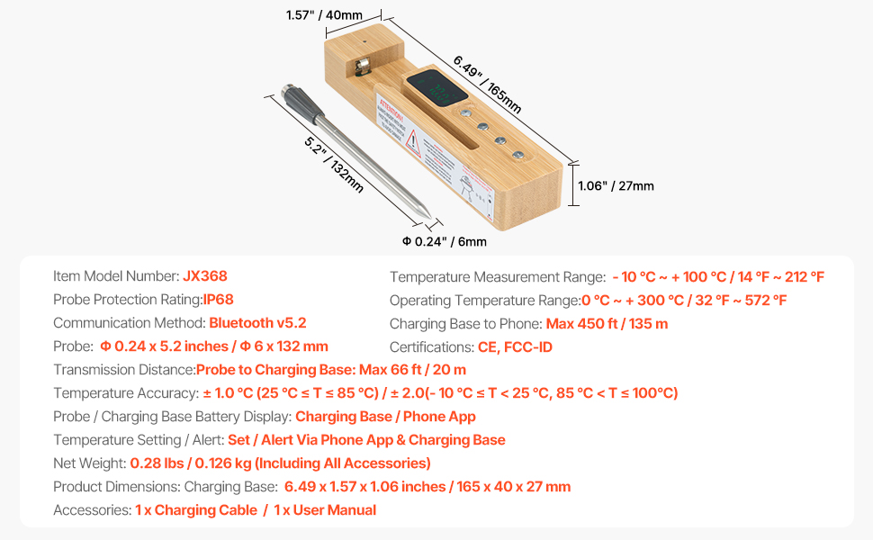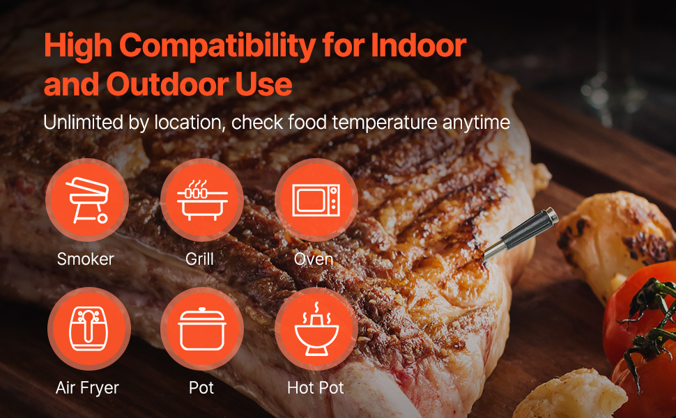 - Work Anywhere: Compatible with grills, ovens, smokers, and BBQ setups, both indoors and outdoors. Features IP68 waterproof construction for dishwasher-safe cleaning.