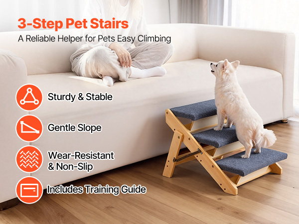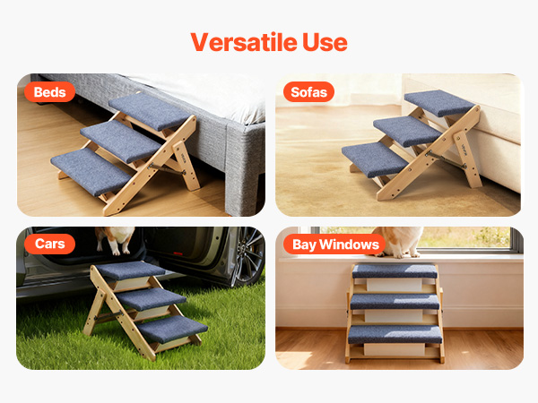 - Versatile 3-Step Design: This 3-step dog stair is ideal for small to medium dogs, senior pets, or pets with limited mobility to reach beds, couches, or car seats safely and comfortably