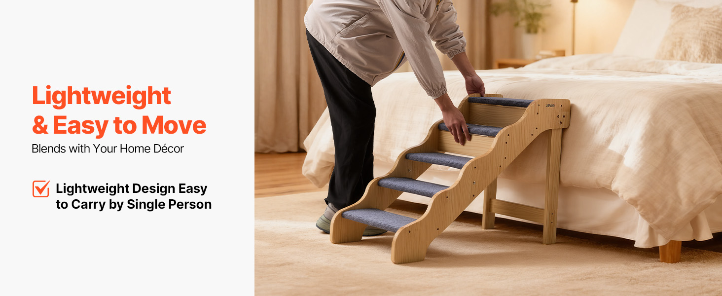 - Lightweight and Easy to Move: Our pet steps feature a lightweight fixed-frame design, enabling effortless placement next to a bed, sofa, or other elevated surface. The simple, elegant look blends seamlessly with any home decor.