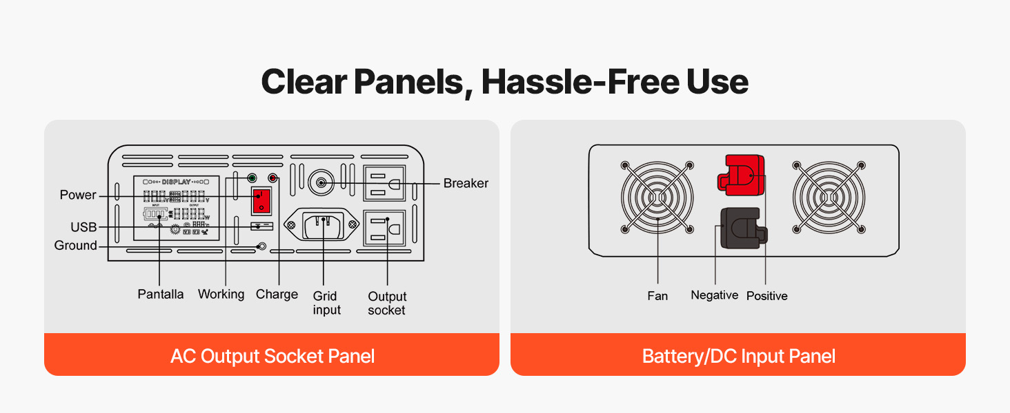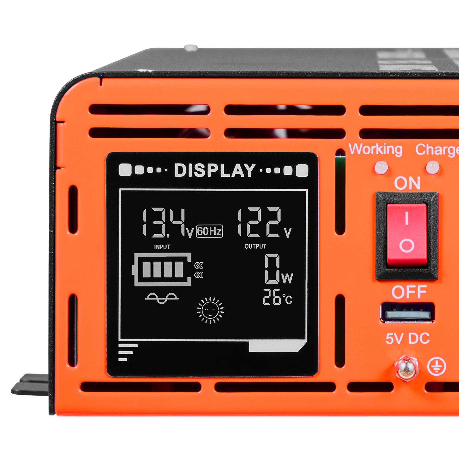 Our pure sine wave power inverter features a LCD screen, displaying working status in real time for easy monitoring.