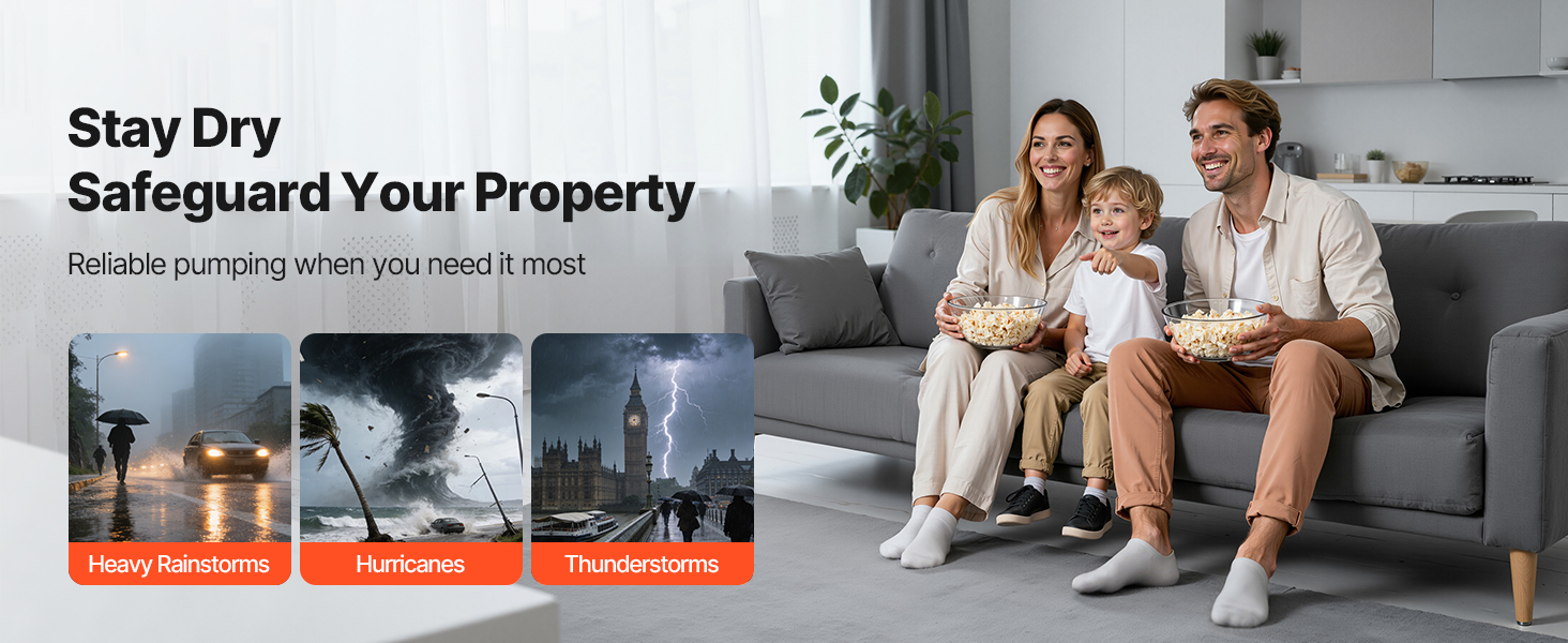 Keep your sump pump running and your basement dry with this pure sine wave inverter. Featuring a plug-and-play design, smart 3-stage charging, real-time LCD monitoring, multiple security protections, and ≤15 ms fast power switching, it delivers reliable backup power when you need it most.