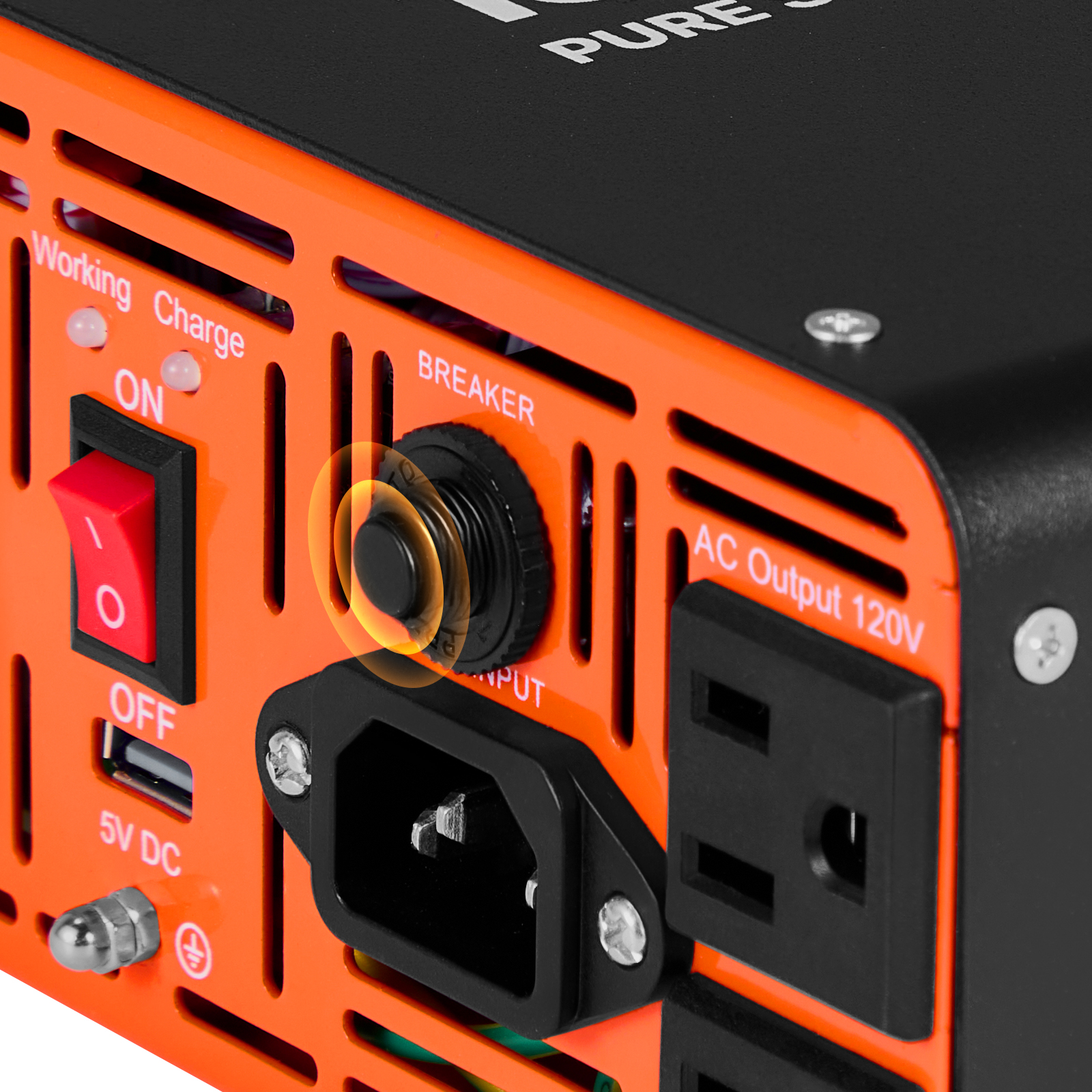 - Security Comes First: Engineered with security as a priority, this pure sine wave power inverter incorporates built-in protection against overcurrent, overvoltage, short circuit, reverse polarity, and elevated temperatures. A circuit breaker provides an additional layer of safeguarding.