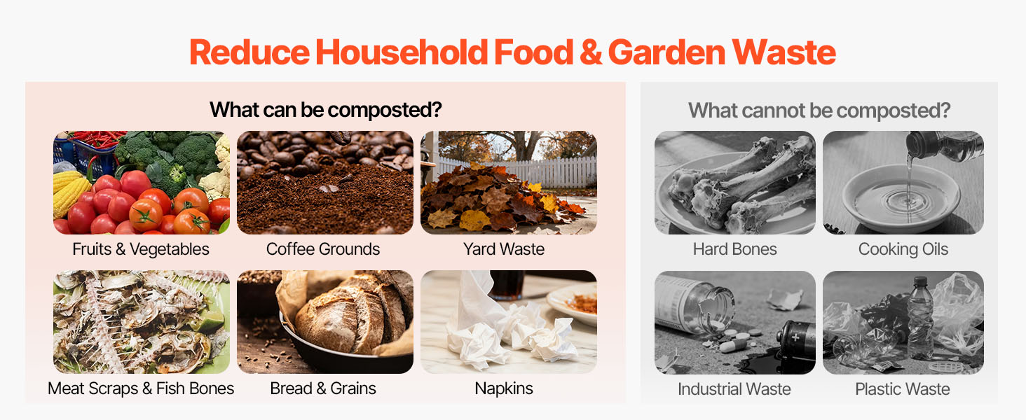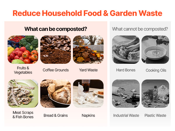 Cut food scraps before adding them to the outdoor compost tumbler to speed up results. Avoid citrus, meat, dairy, or oily foods. It reduces up to 90% of household waste while creating nutrient-rich compost.