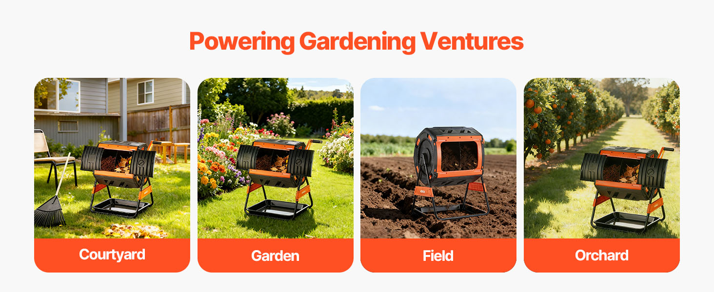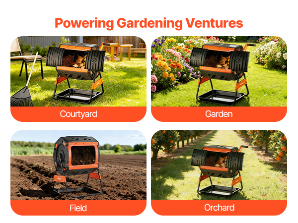 - Durable All-Season Construction: Engineered with a heavy-duty plastic barrel and powder-coated steel frame, this tumbling composter withstands rust, UV exposure, and extreme weather conditions. Designed for continuous year-round outdoor operation.