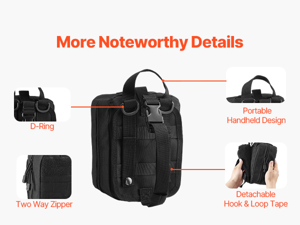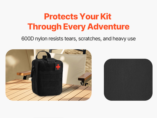 - Tough & Wear-Resistant Fabric: Constructed from 600D nylon, this camping first aid kit is engineered for durability. Its high-strength, abrasion-resistant material withstands daily operational demands, resisting tears, abrasions, and adverse environmental conditions.