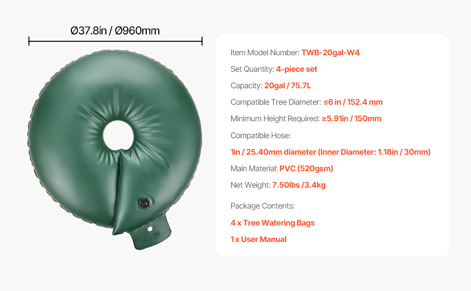 - Durable & Reliable Quality Manufactured from robust, weather-resistant PVC material, these tree watering rings ensure extended service life. The design incorporates tear-resistant properties and structural integrity to withstand impacts from tree branches, maintaining performance under full operational pressure.
