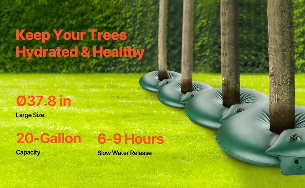 - Deep Hydration System Each tree watering bag delivers up to 20 gallons (75.5L) of water over a controlled 5- to 8-hour release cycle. This method ensures targeted root-zone saturation, critical for newly transplanted or heat-stressed trees.