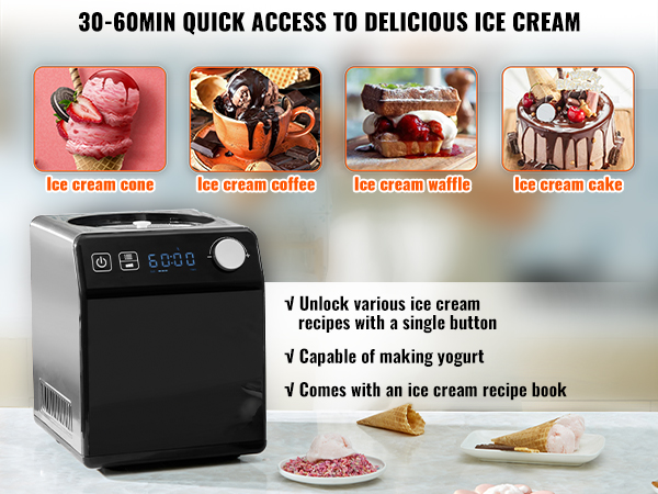 - Enjoy Delicious Ice Cream: The no pre-freezFriendlying gelato maker includes recipes for various ice cream flavors, enabling DIY production of multiple ice cream specialties including ice cream cones, ice cream coffee, ice cream waffles, and ice cream cakes.