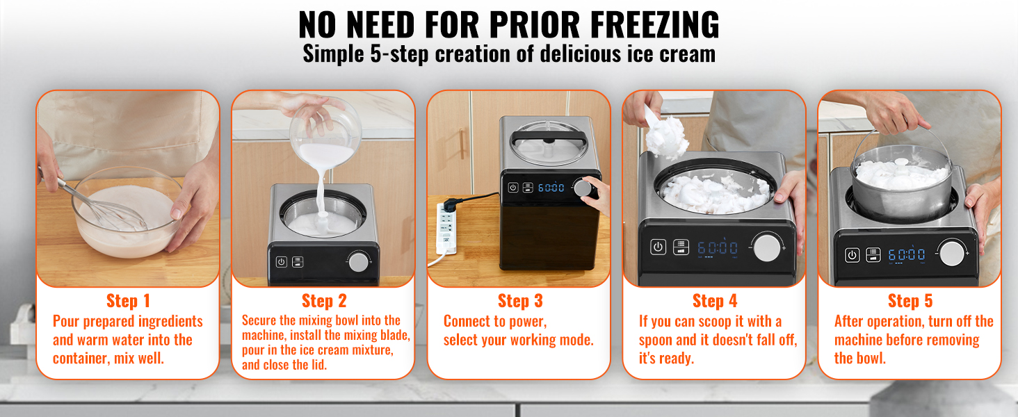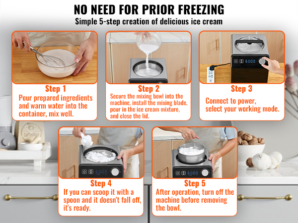 There is no need for pre-freezing, allowing immediate use of the ice cream maker for creation.